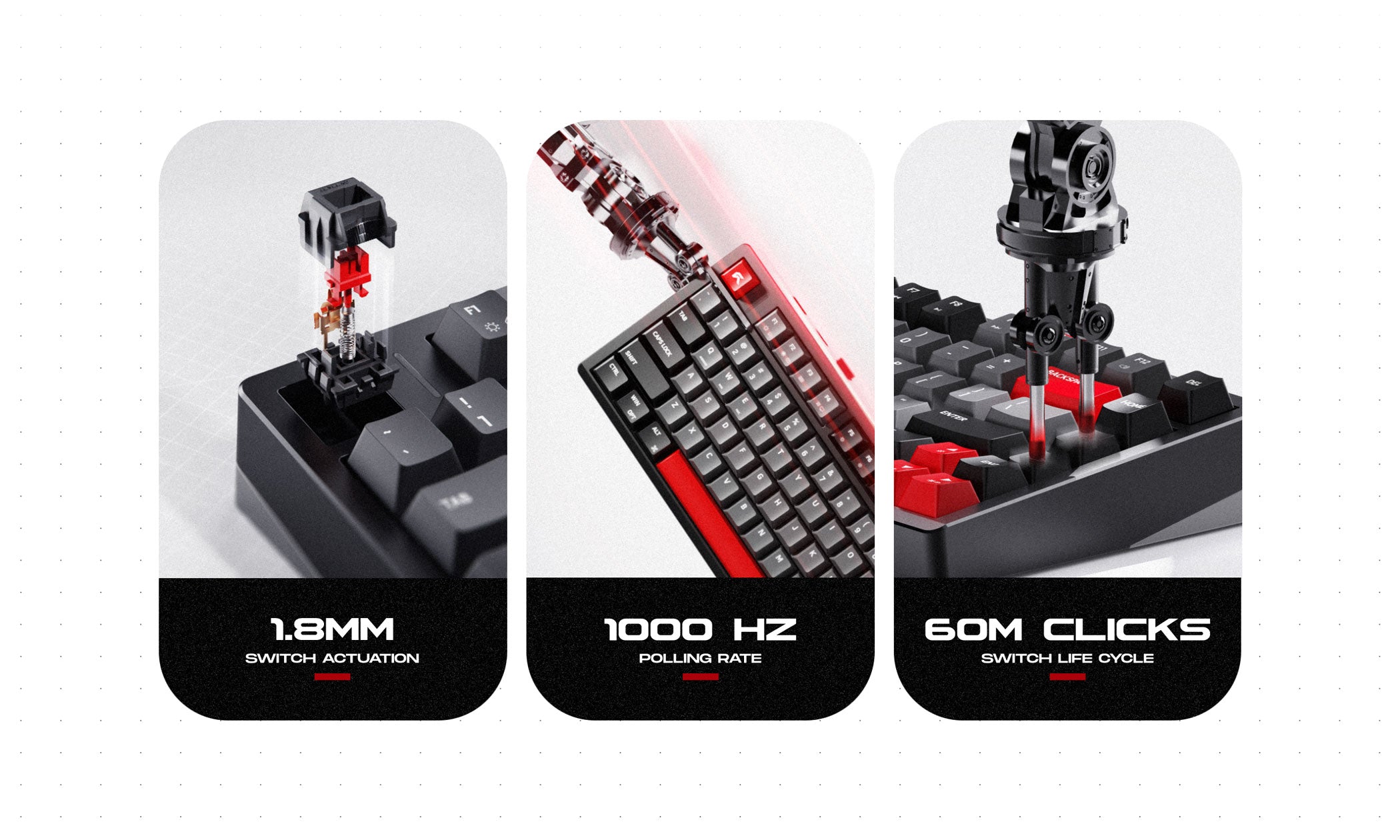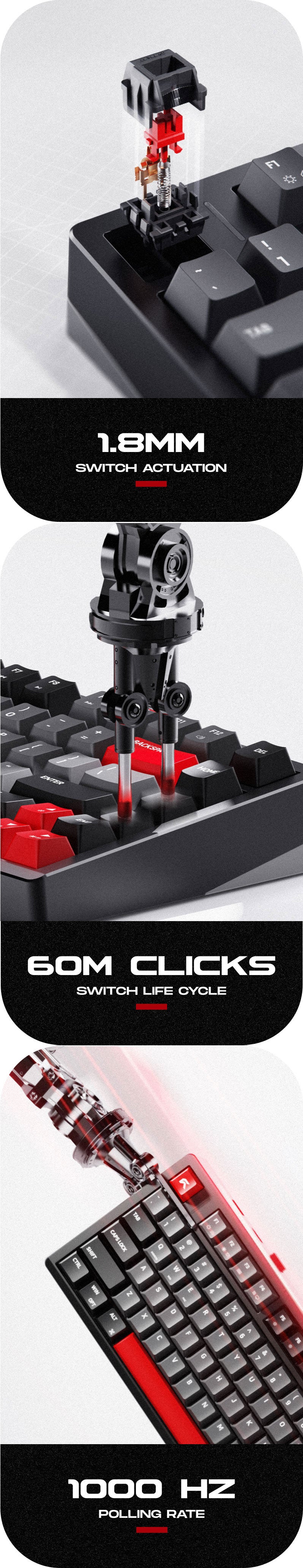 - Switch life: 60 million keystrokes
