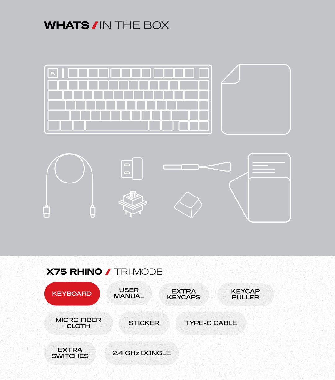 X75 Rhino | TKL CNC Aluminium Tri-Mode Gaming Keyboard